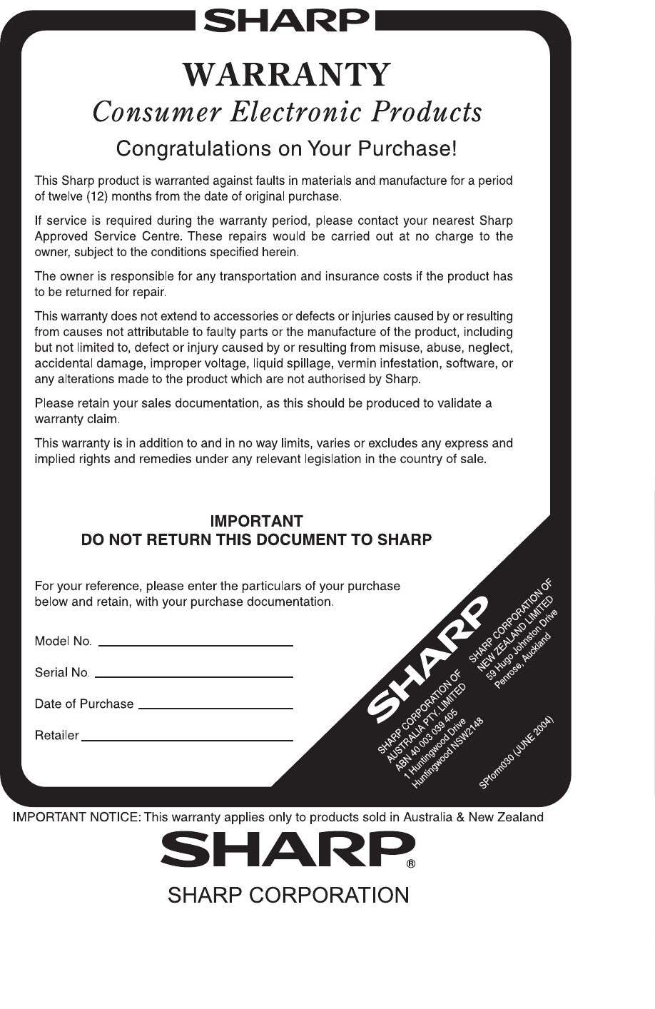 DEAR SHARP CUSTOMER