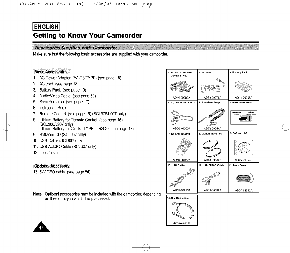 Note: Optionalaccessoriesmaybeincludedwiththe camcorder,depending