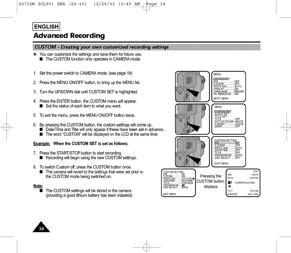 • The word"CUSTOM"will be displayedon the LCDat the sametime.