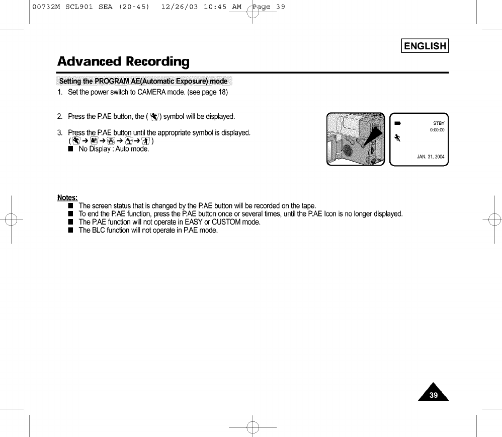 • The BLCfunctionwill notoperatein P.AEmode.