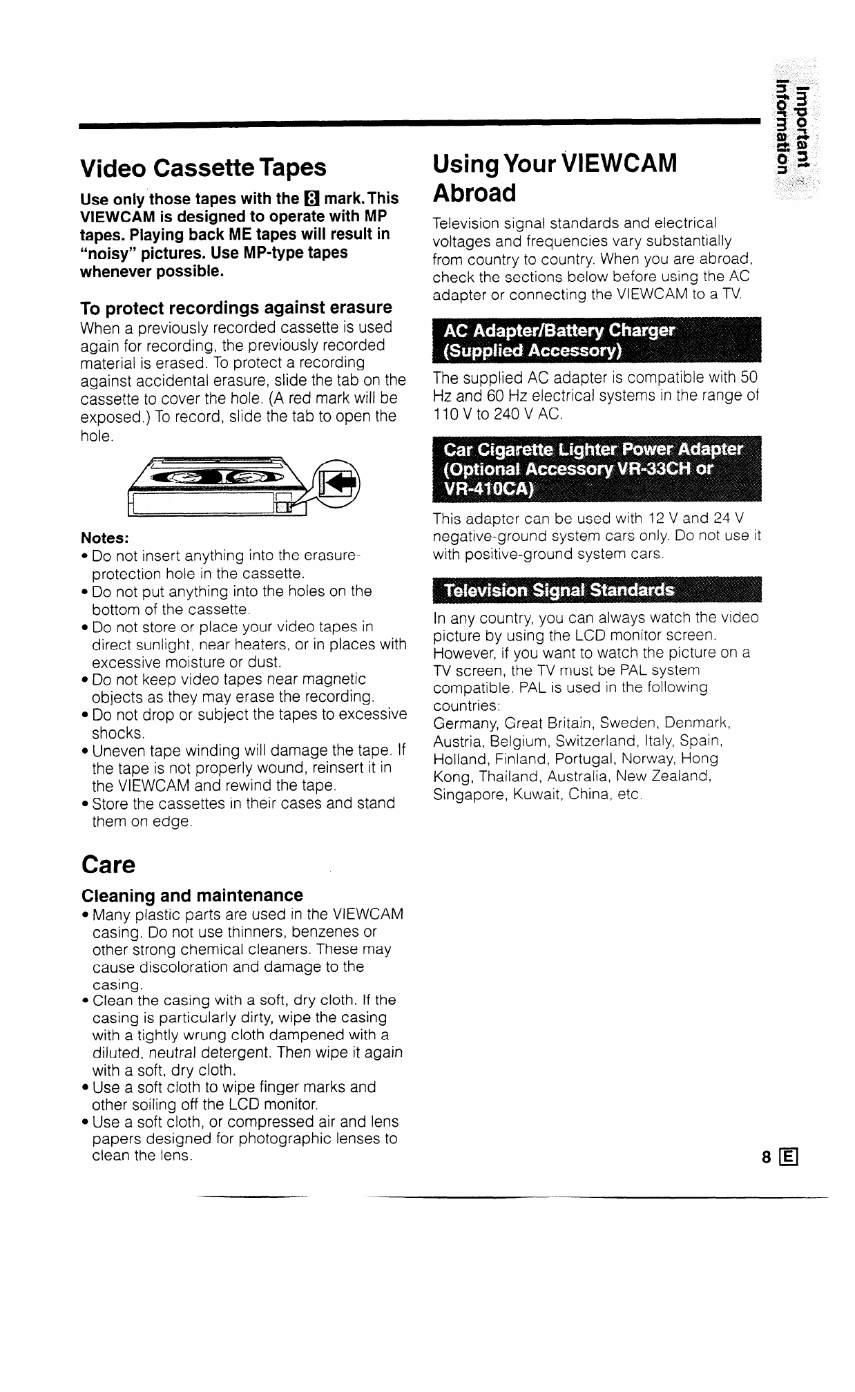 adapter or connecting the VIEWCAM to a TV.