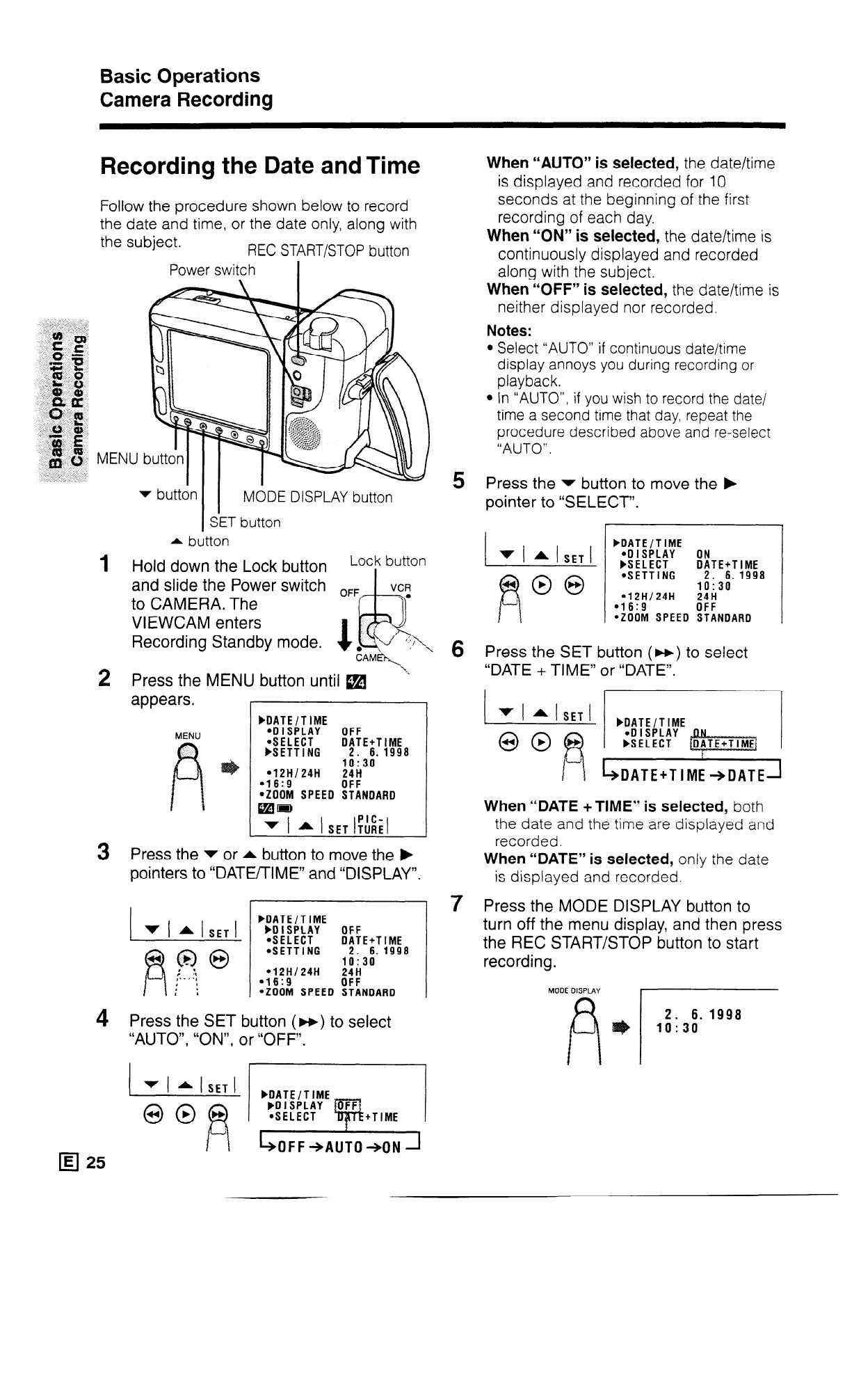 l Select “AUTO” if continuous date/time