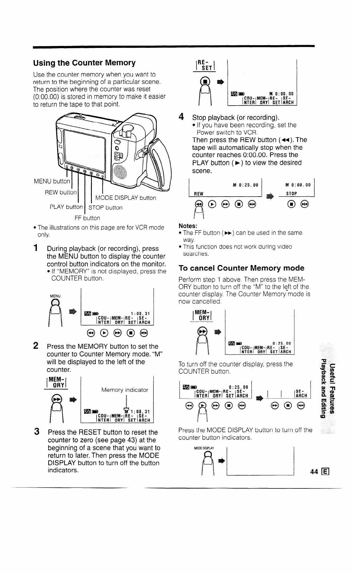 counter display. The Counter Memory mode is
