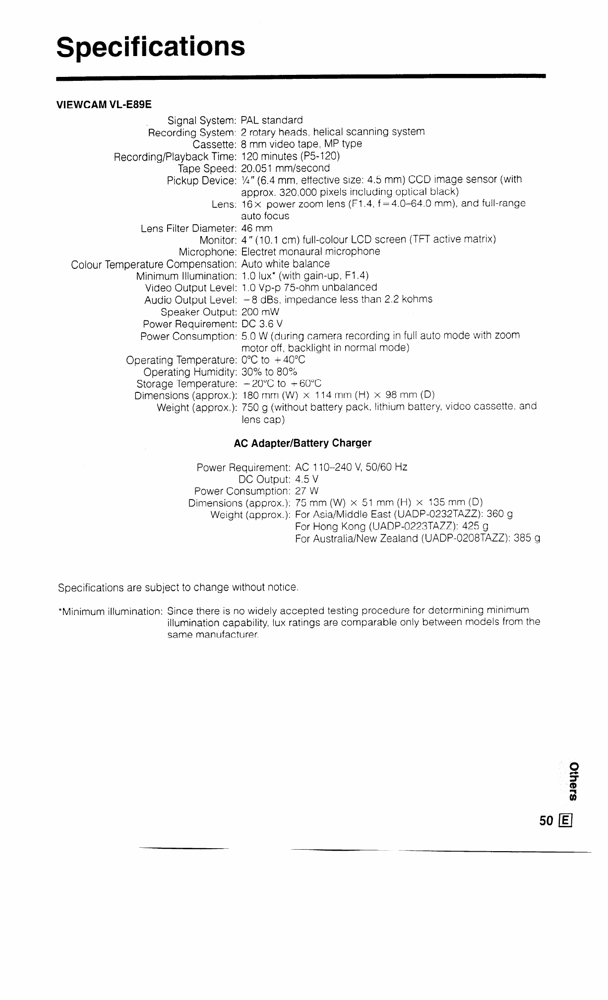 *Minimum illumination: Since there is no widely accepted testing procedure for determining minimum