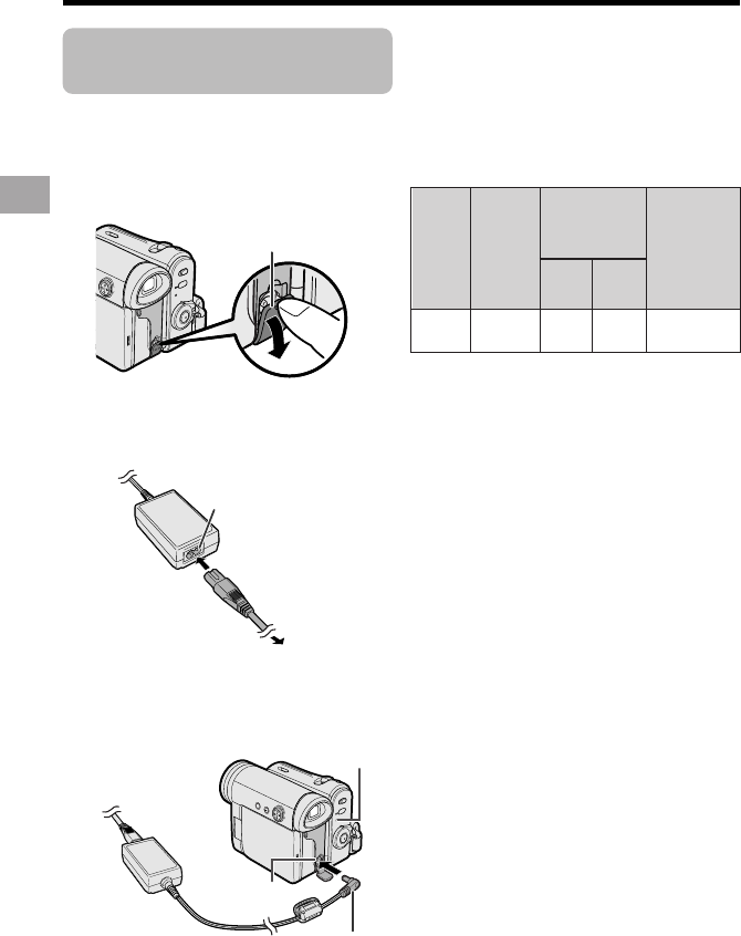 • The battery pack and AC adapter become