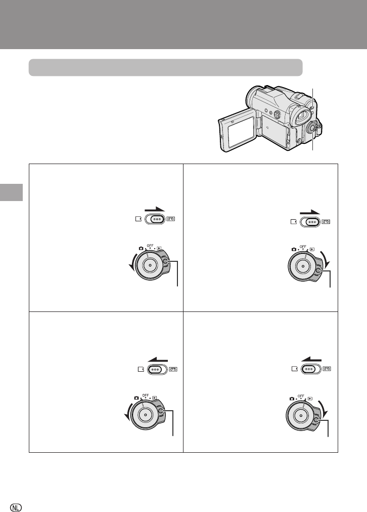 • U mag niet met de medium-keuzeschakelaar tijdens opnemen of weergeven de camcorder-gebruiksfunctie veranderen, want