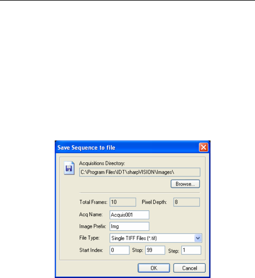 C:\Program Files\IDT\sharpVISION\Acquis001 and store 100 images in TIFF format. The