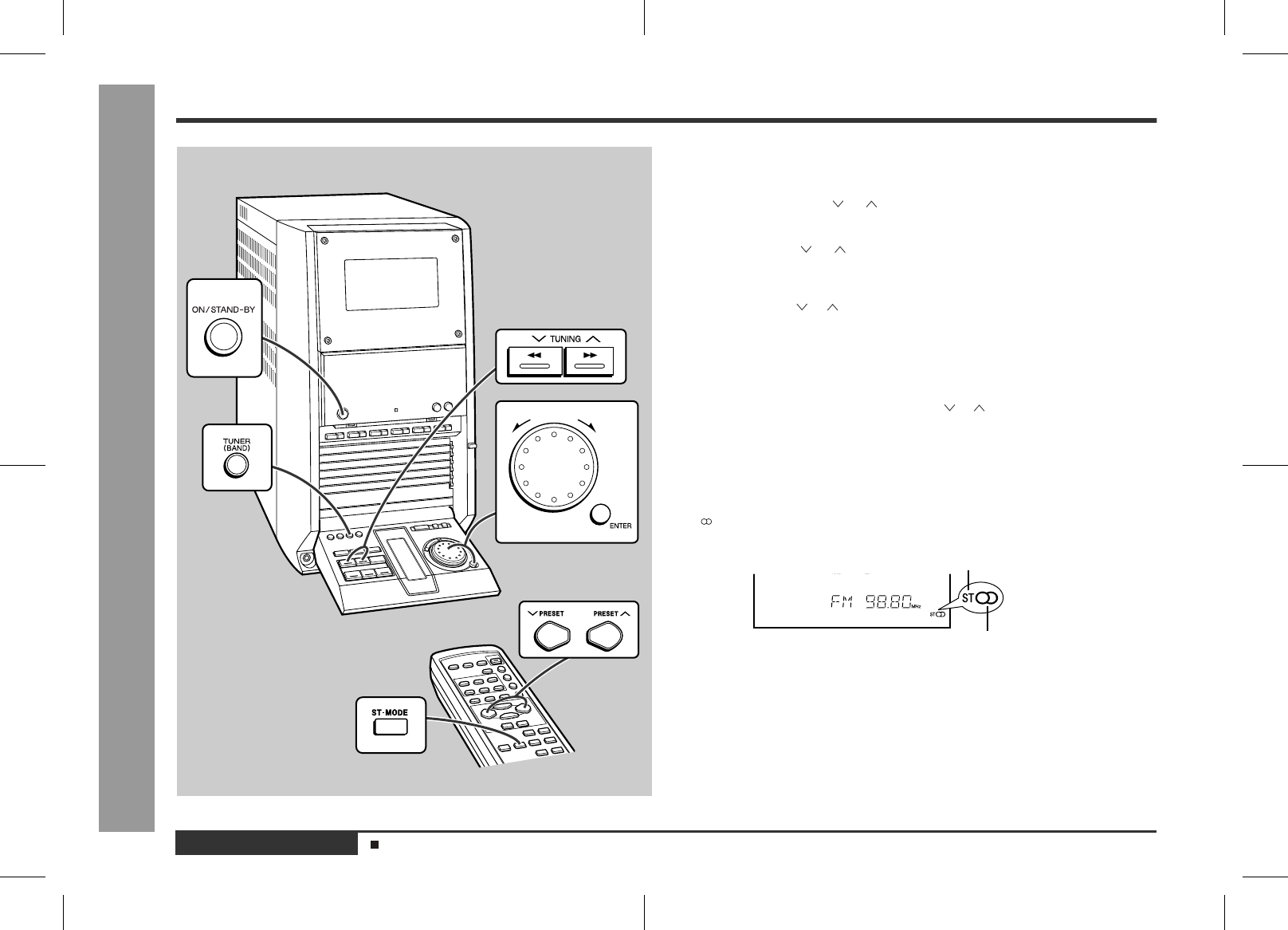 Press the ST-MODE button on the remote control to display the "ST" indicator.