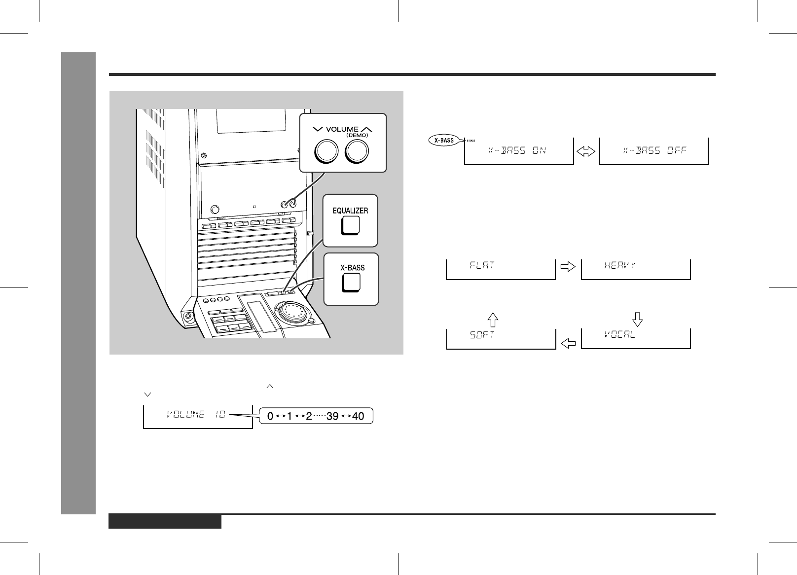 Wenn die X-BASS-Taste gedrückt wird, schaltet das Gerät in die Extrabaß-Betriebs-