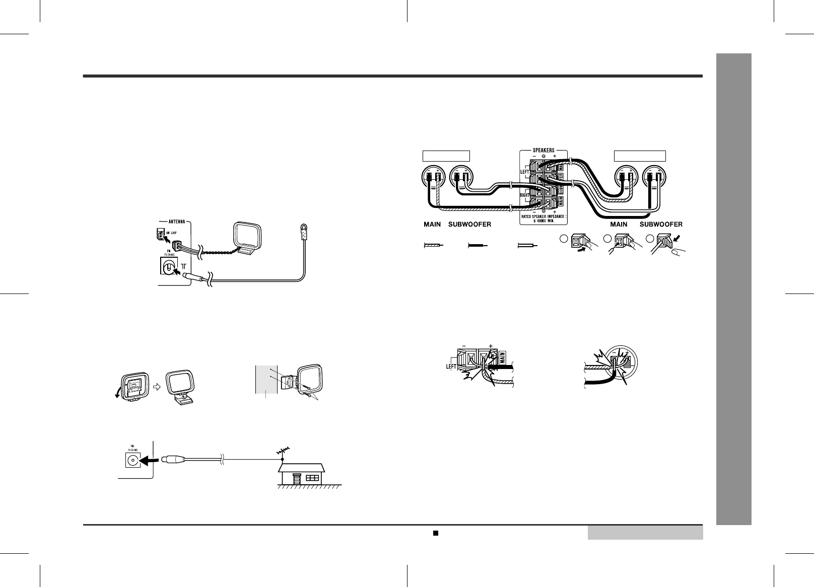 Ne pas confondre les bornes MAIN et SUBWOOFER. Le système ou les encein-