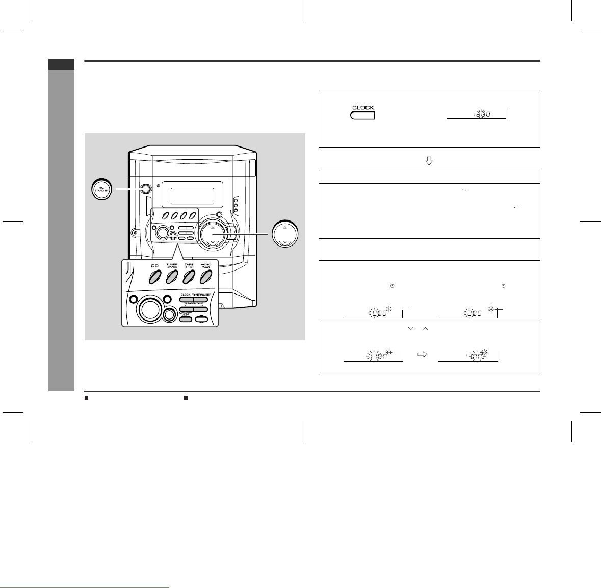 Setting the clock (See page 10.) / Tuning (See page 14.)