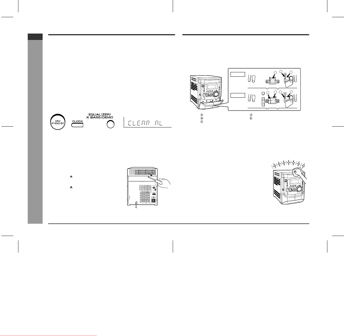 2 Whilst pressing down the CLOCK button and the EQUALIZER/X-BASS/DEMO