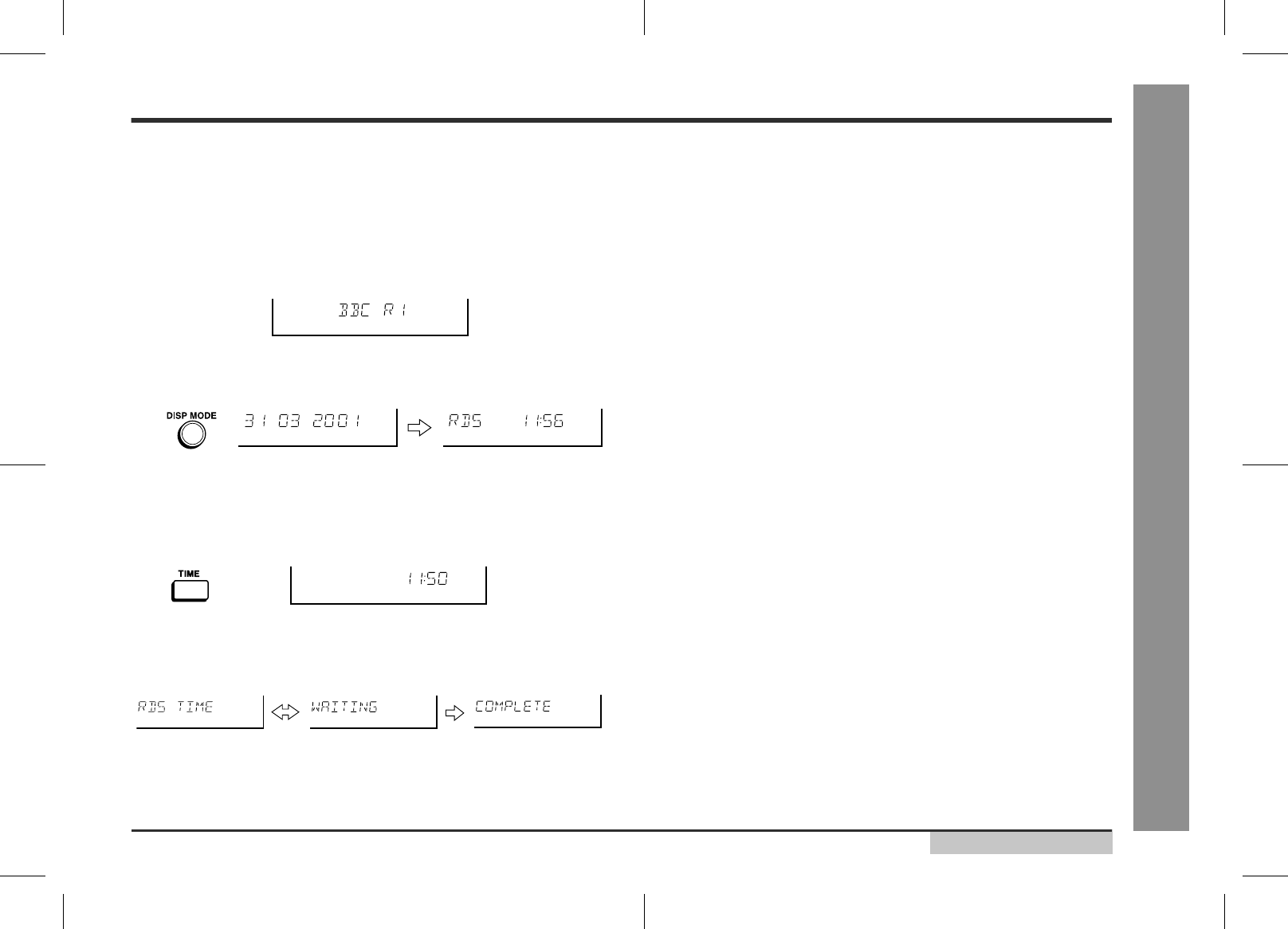 Lorsque l'heure RDS est affichée, presser la touche TIME plus de 3