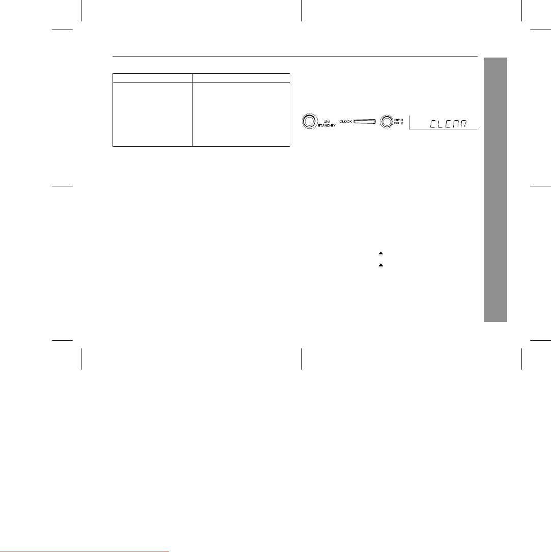 2 Whilst pressing down the CLOCK button and the DISC SKIP