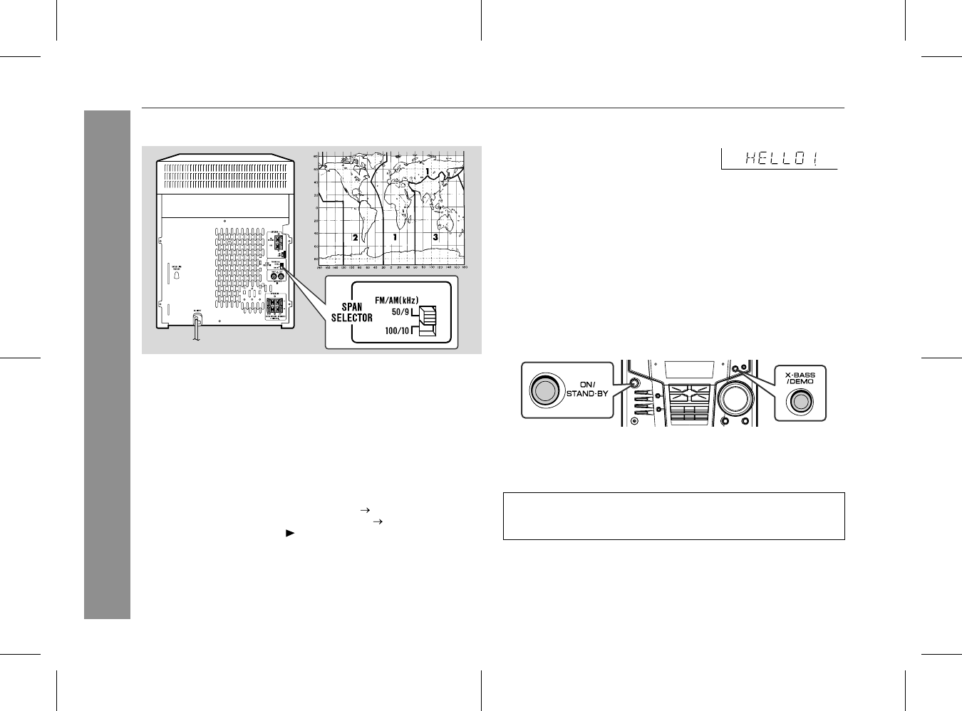 3 Whilst pressing down the button and the X-BASS/DEMO but-