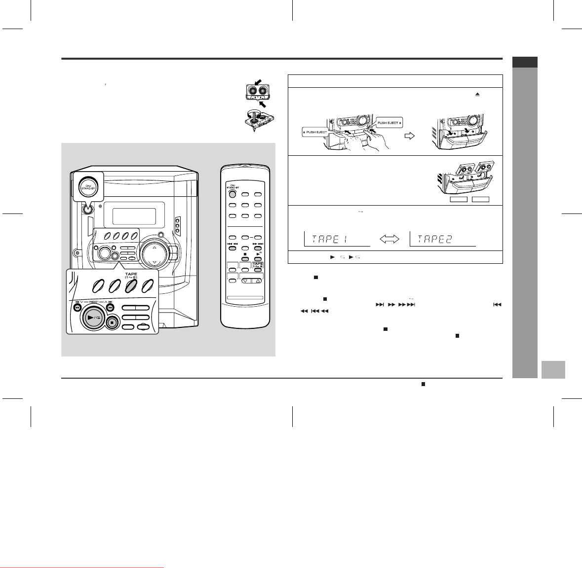 Before playback: Playback is possible in TAPE 1 compartment as well as in TAPE 2.