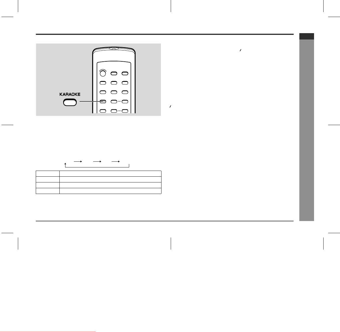 Each time the KARAOKE button is pressed, the mode will change as follows: