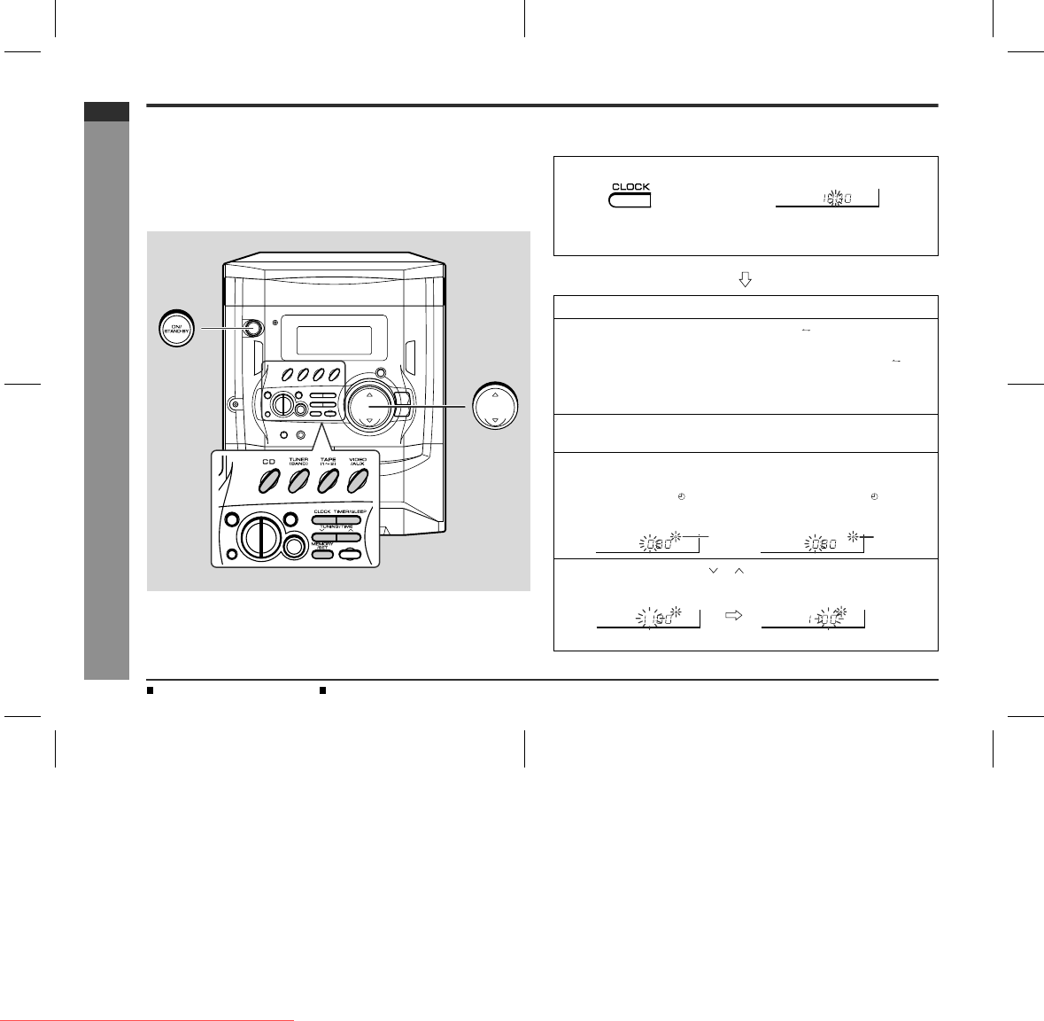 Setting the clock (See page 11.) / Tuning (See page 15.)
