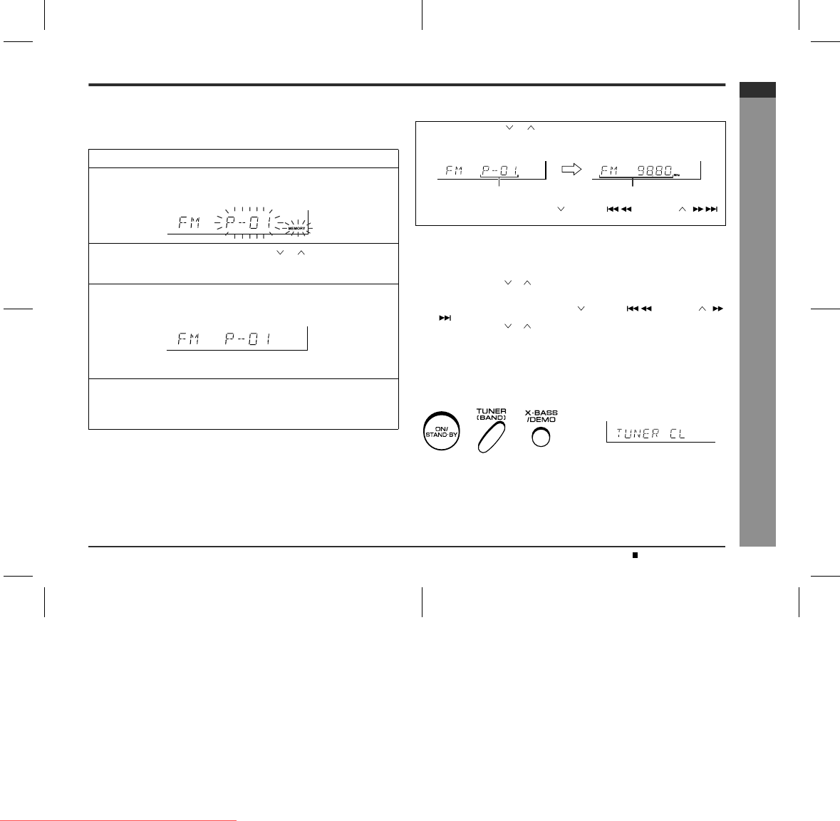 press the ON/STAND-BY button until "TUNER CL" appears.