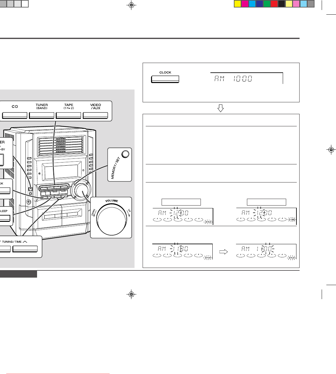 The unit turns on and plays the desired source (CD, tuner, tape) at the preset time.