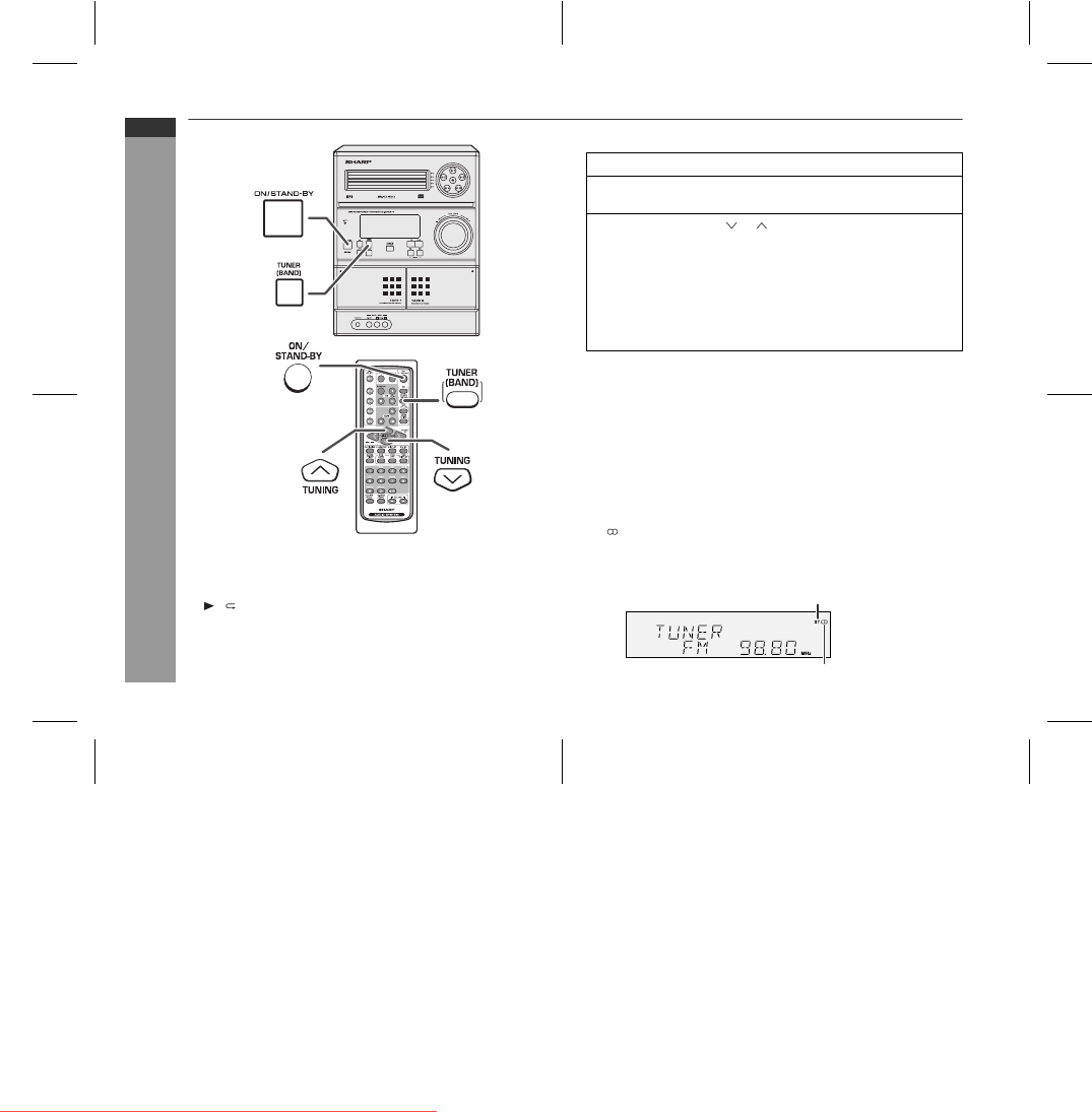 turns on and the "TUNER" function is activated.