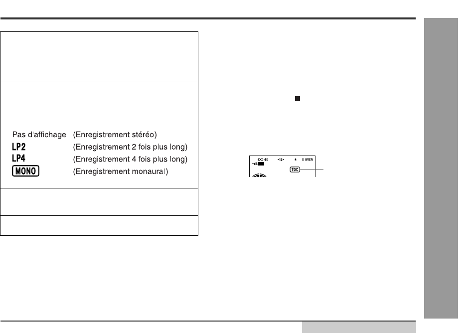 À l'arrêt d'enregistrement, "TOC" apparaît. Dans cet