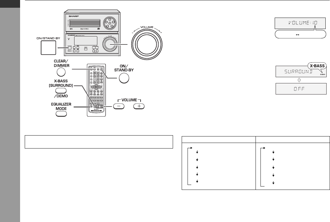 In CD/TUNER/TAPE mode In GAME/VIDEO mode