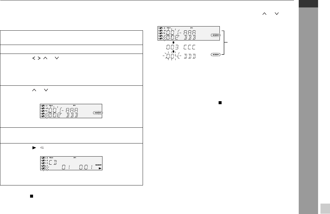 button. If the folder (or title) is programmed, “MEMORY” flashes.