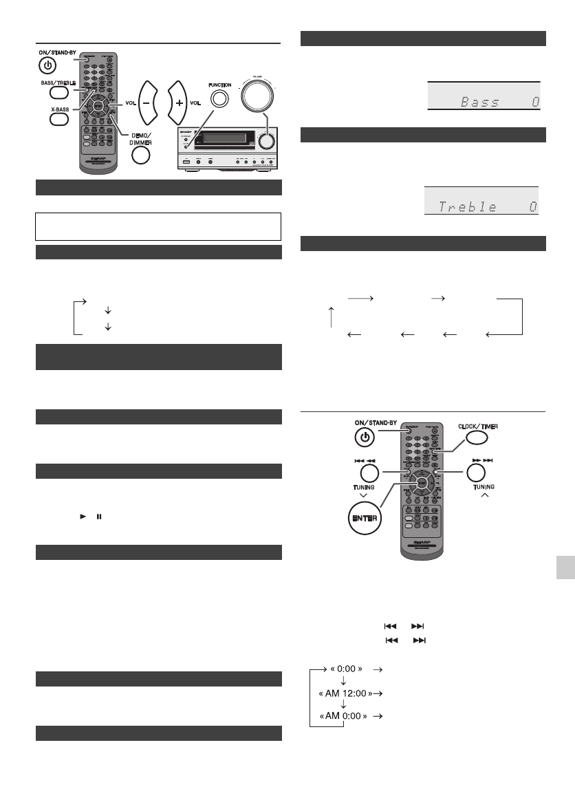 Appuyer sur la touche BASS/TREBLE pour sélectionner