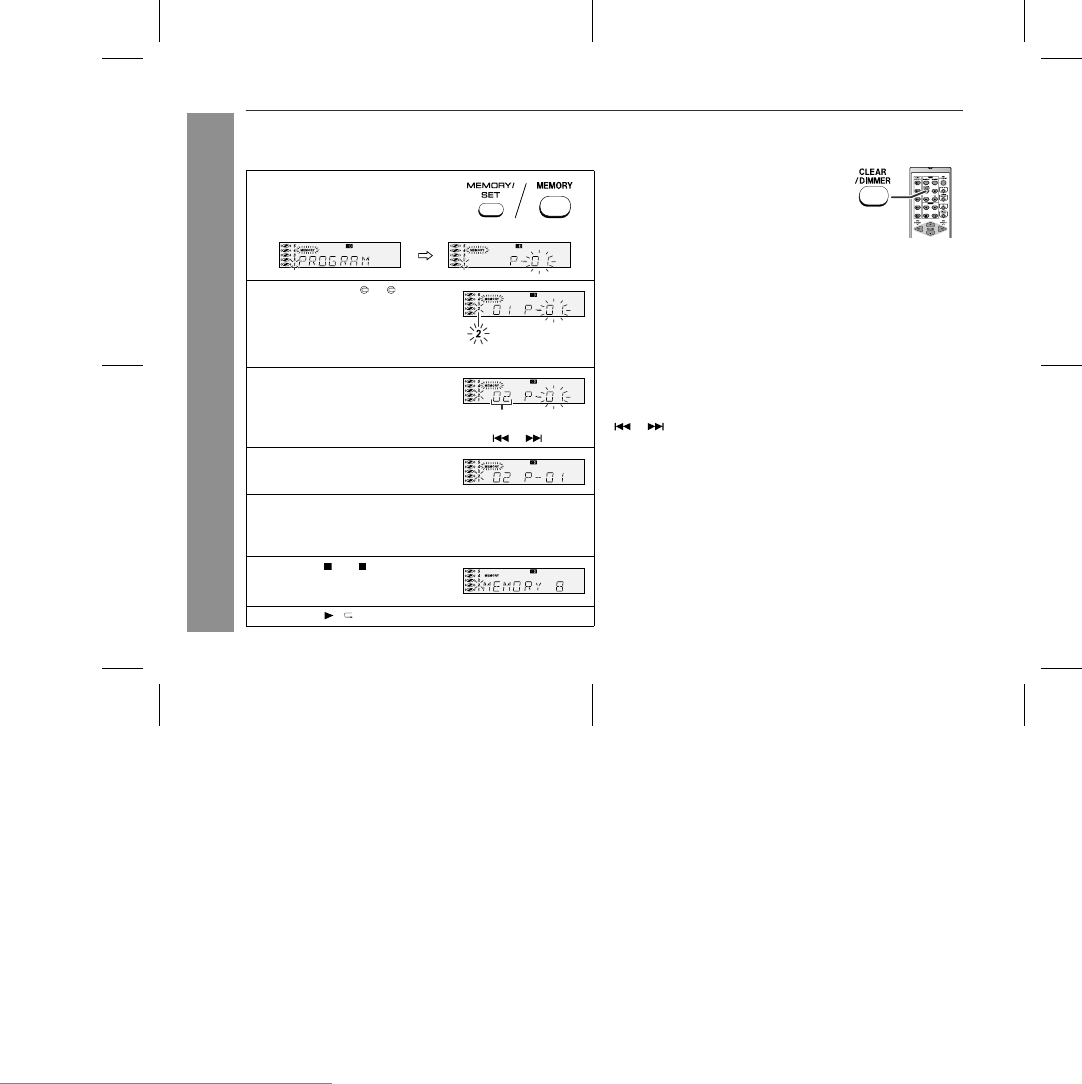 CLEAR/DIMMER button on the remote control. The "MEMORY"