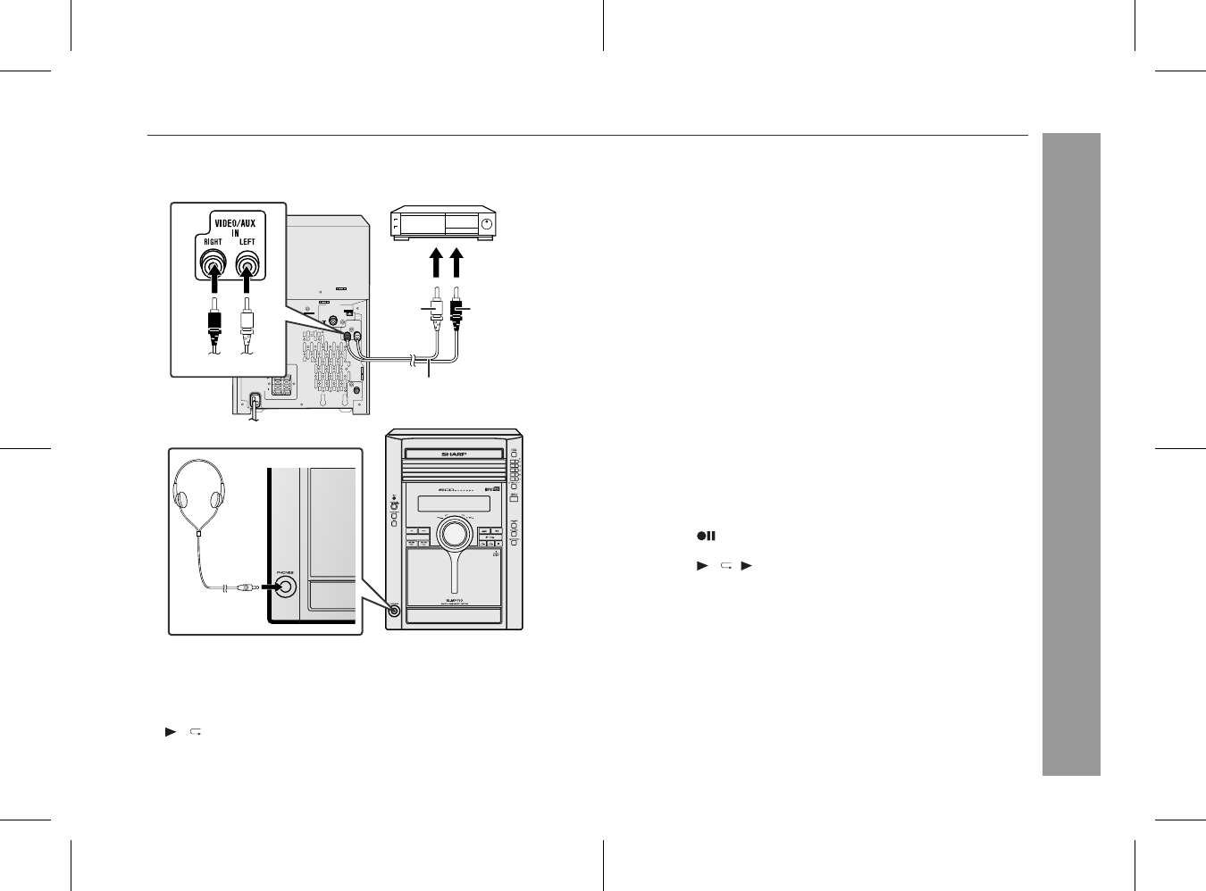 VIDEO/AUX IN sockets.