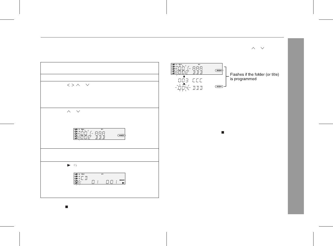 ton. If the folder (or title) is programmed, "MEMORY" indicator