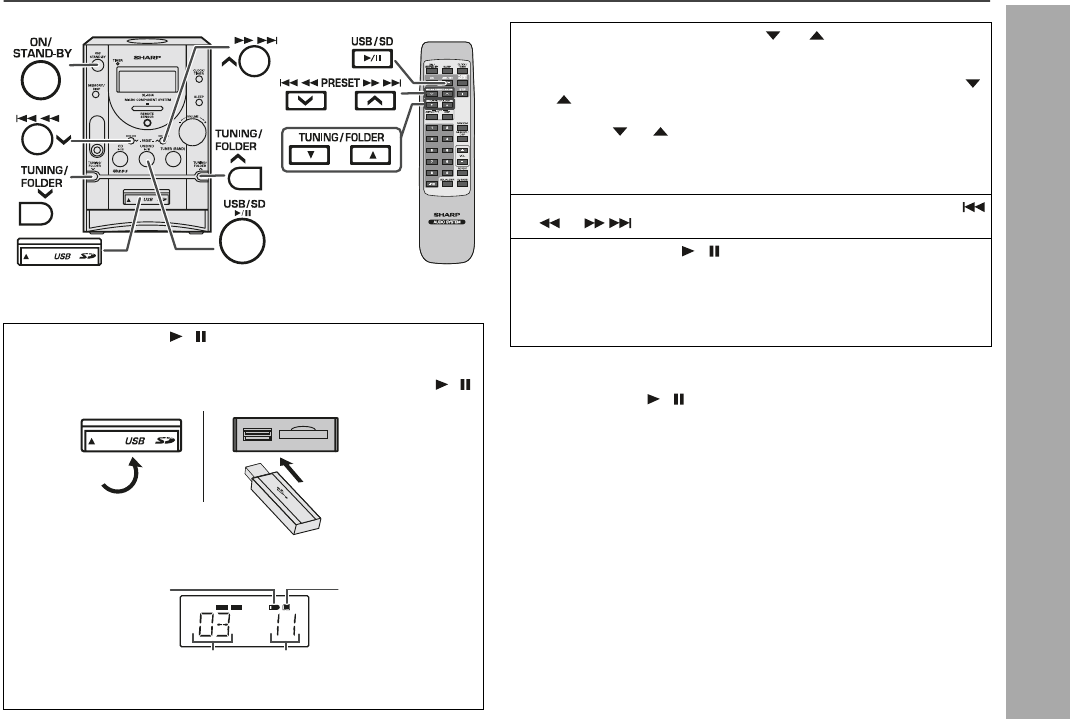2 Press the TUNING/FOLDER ( or ) button to select de-