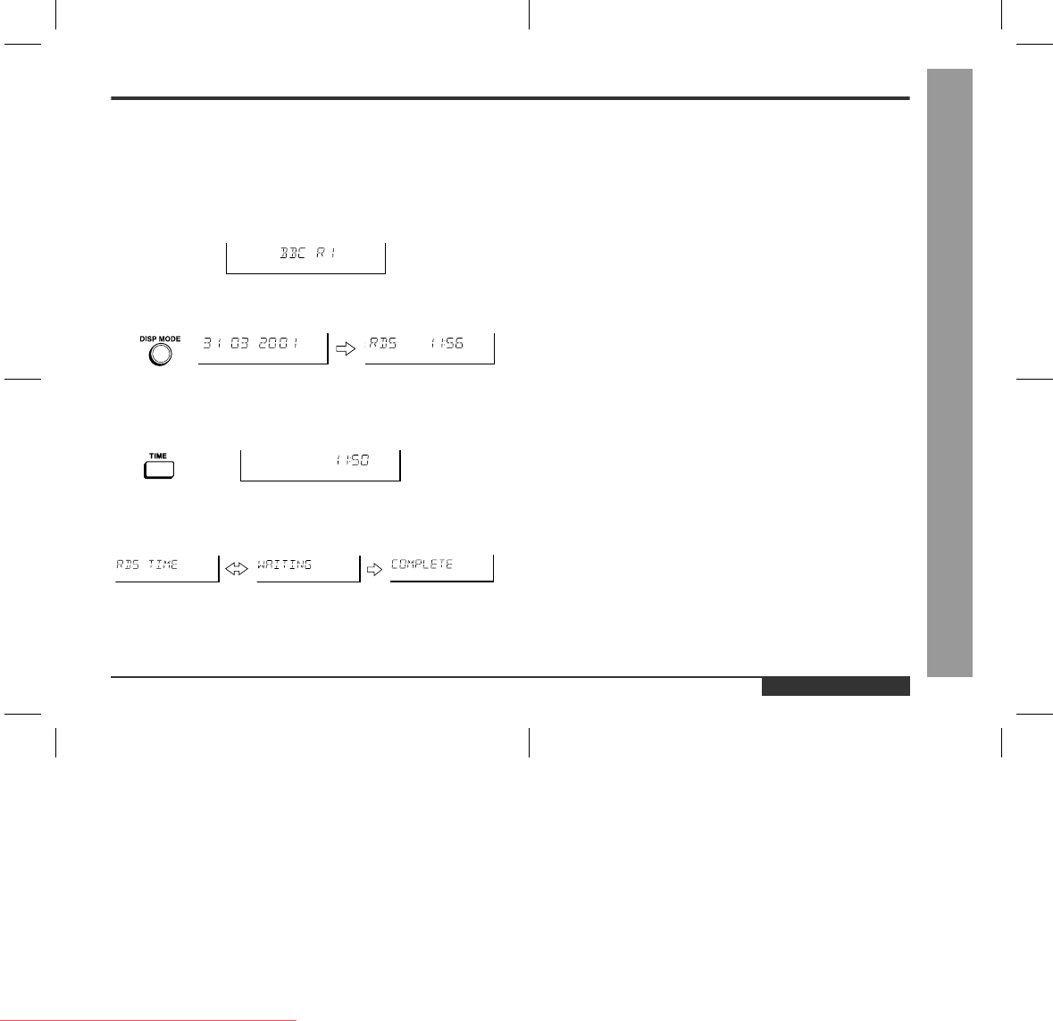 When the TIME button is pressed whilst the RDS time is displayed, the RDS clock