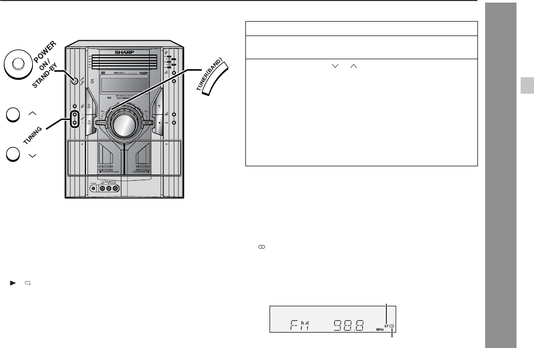 " If the FM reception is weak, press the TUNER (BAND) button to