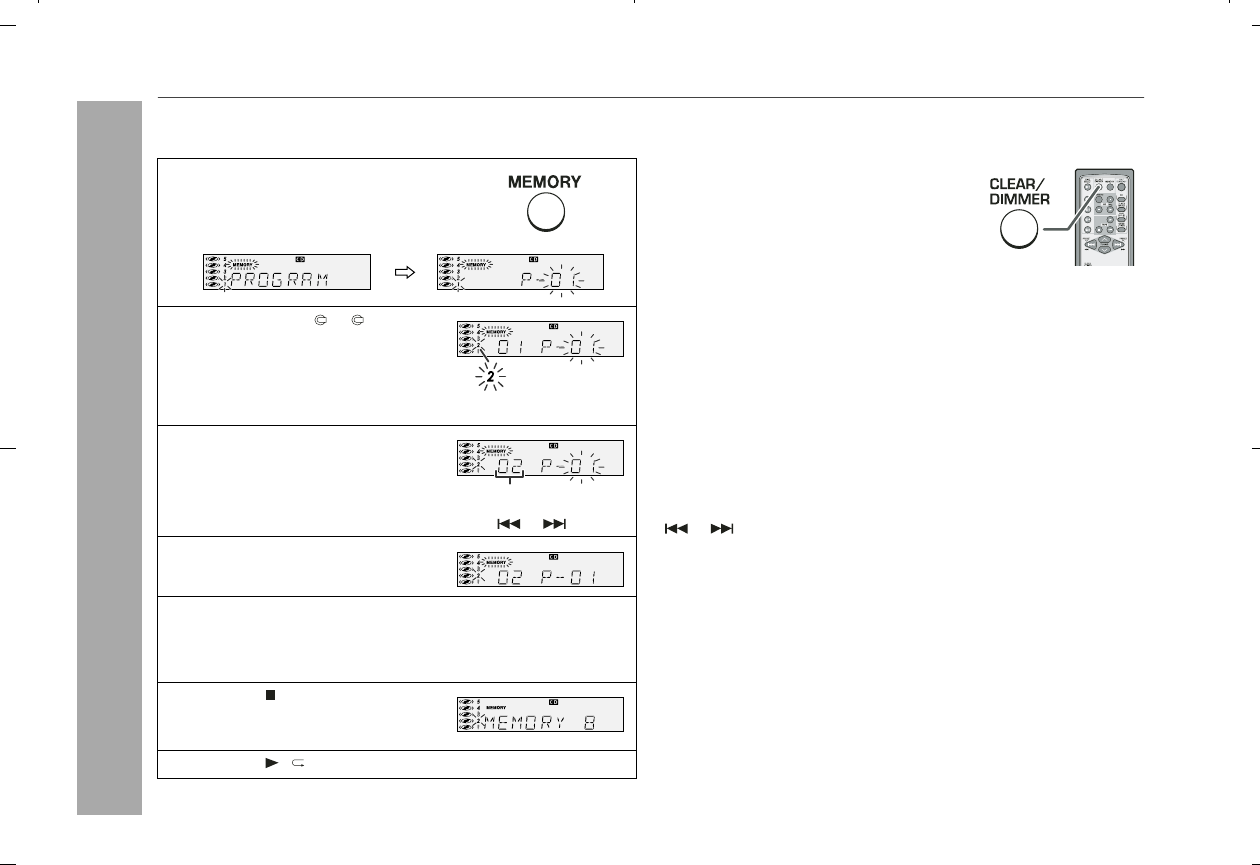 CLEAR/DIMMER button on the remote control. The "MEMORY"