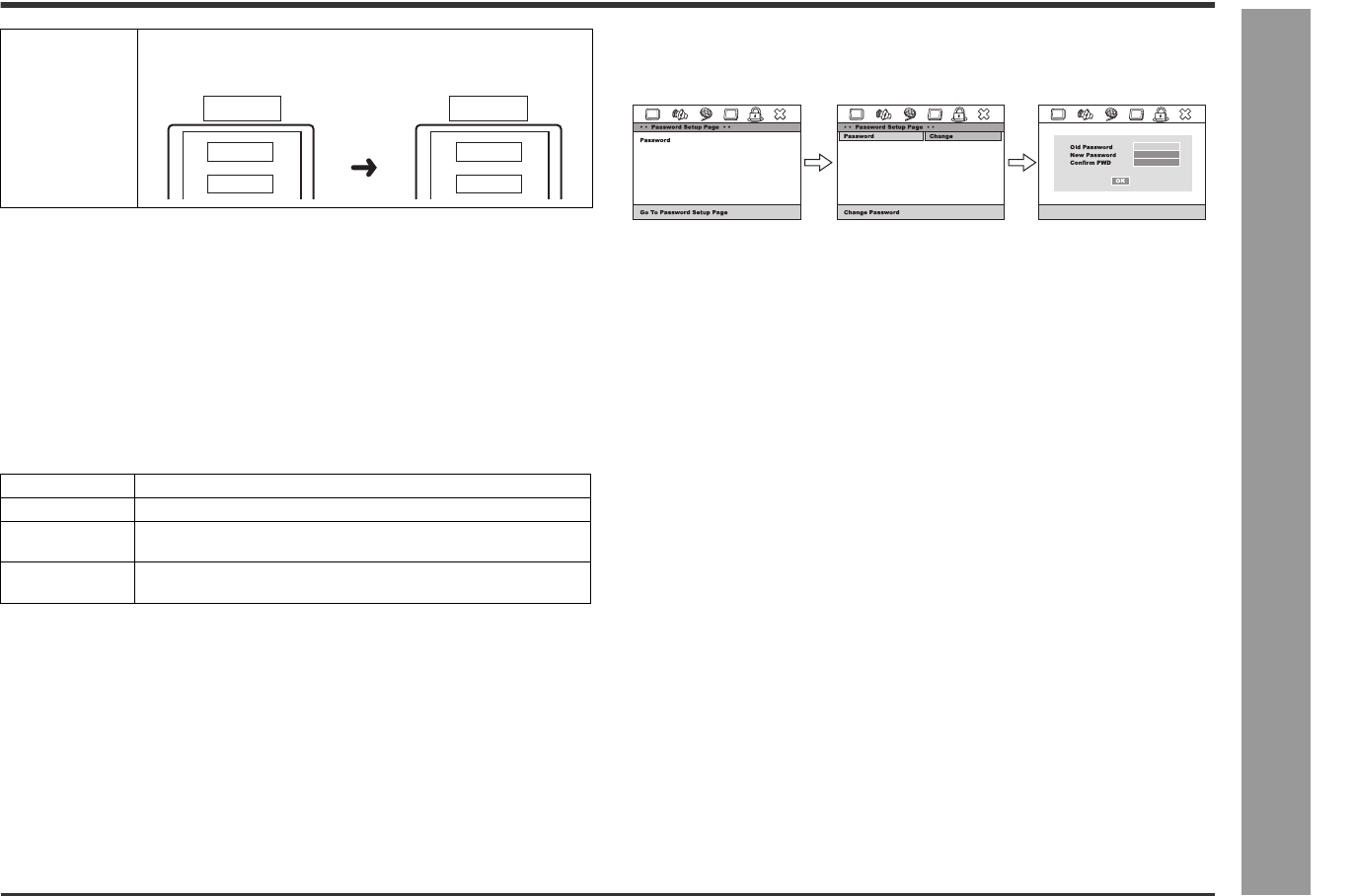 From the setup menu, select “PASSWORD SETUP PAGE”, “PASSWORD” and then
