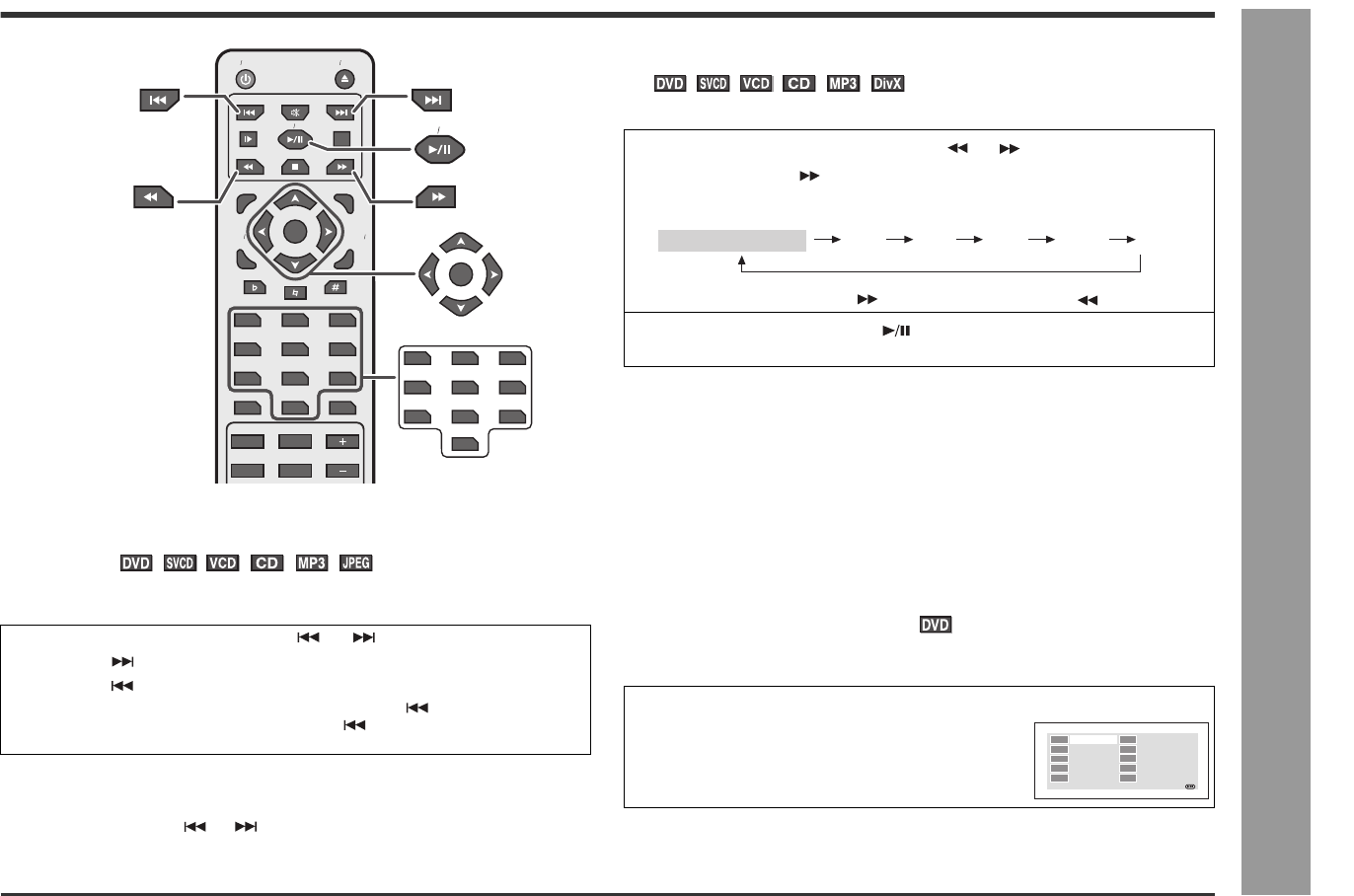 On SVCD, VCD, audio CD and MP3, the search does not operate between tracks.