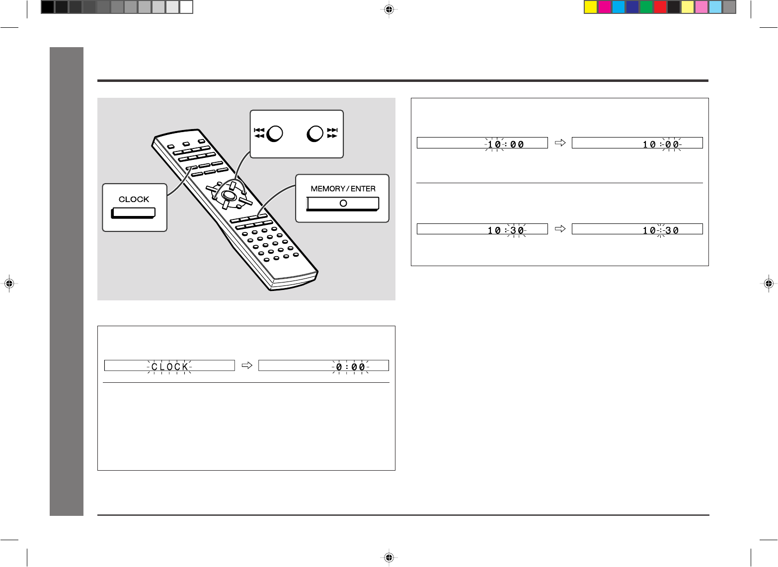 1 Press the CLOCK button and within 10 seconds, press the