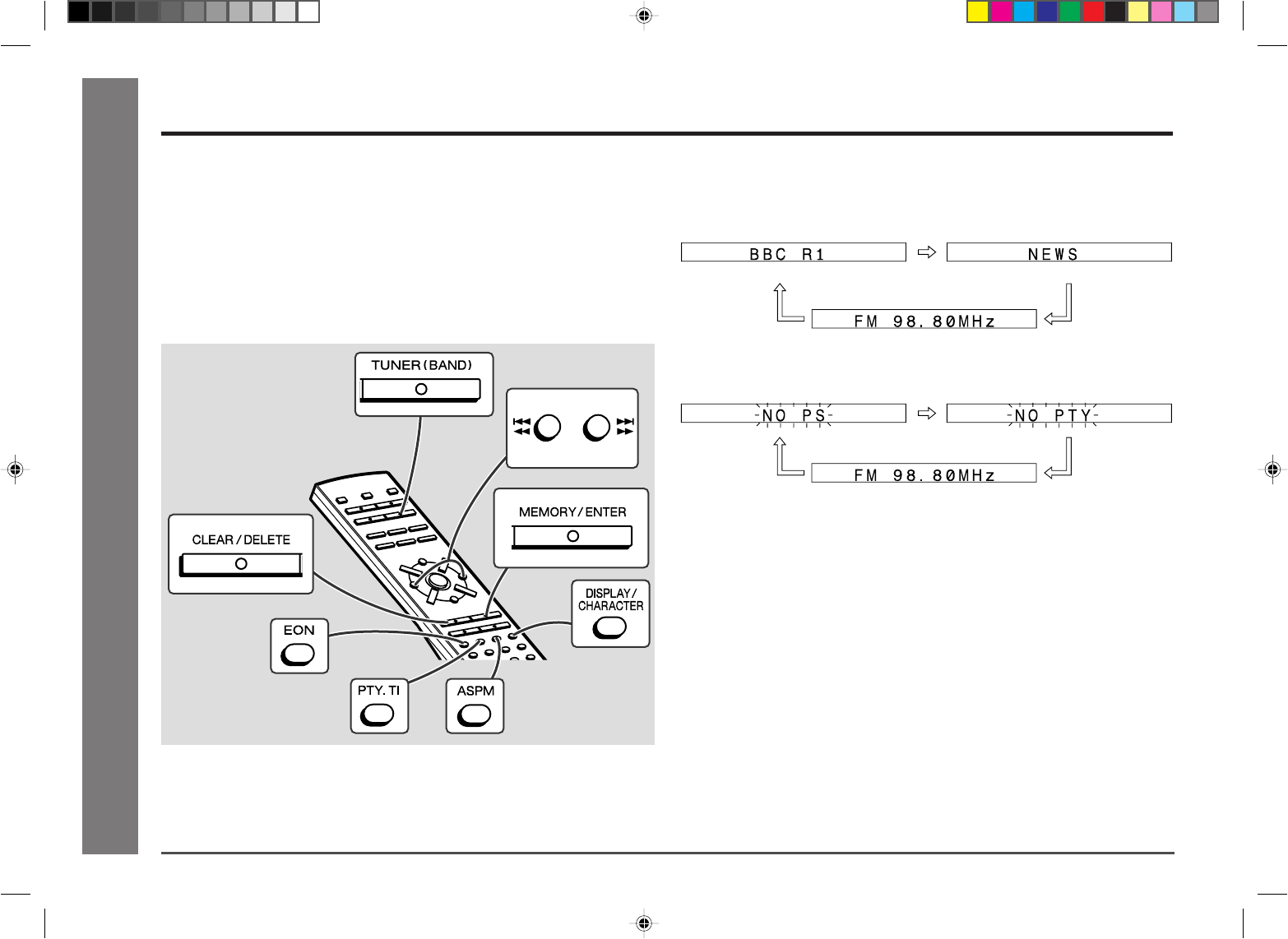 You can control the RDS by using the remote control only.