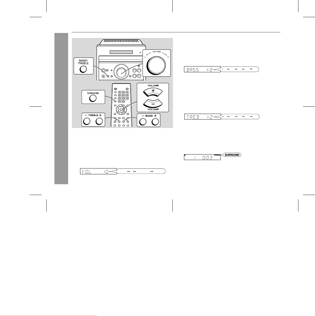 2 Within 5 seconds, turn the VOLUME control to adjust the treble.