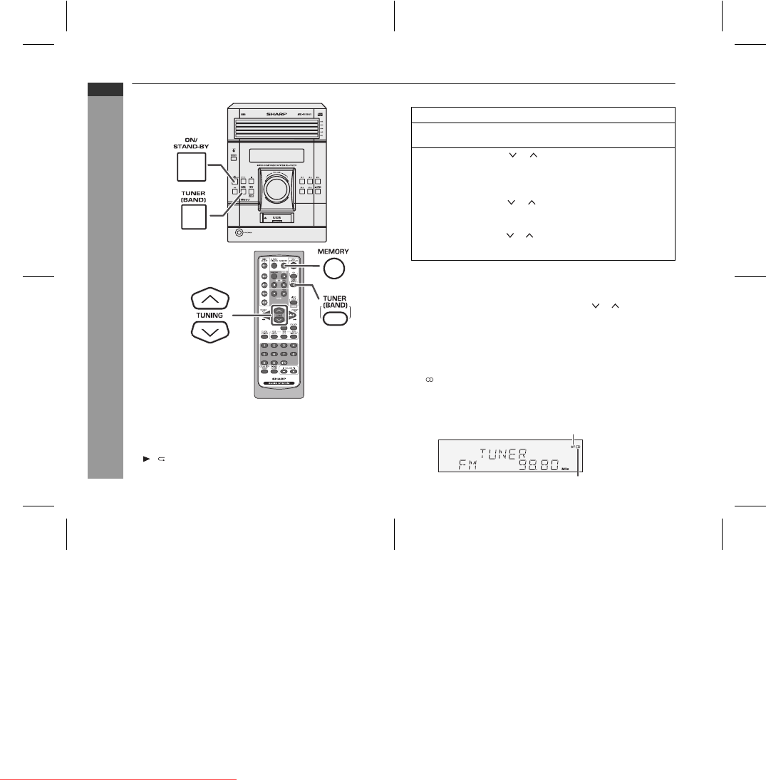 To stop the auto tuning, press the TUNING ( or