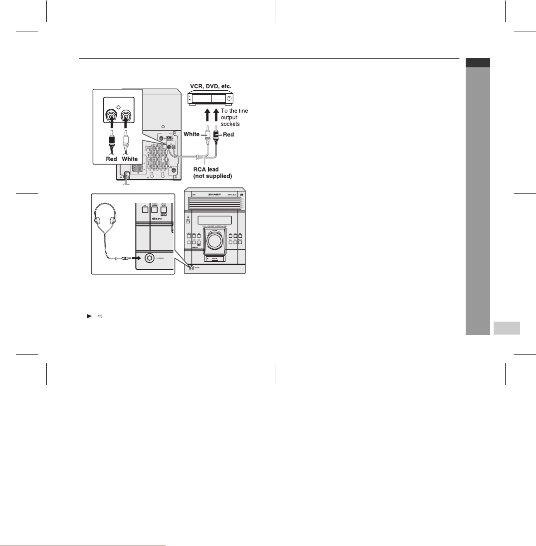 1 Use a connection lead to connect the VCR, DVD, etc. to the