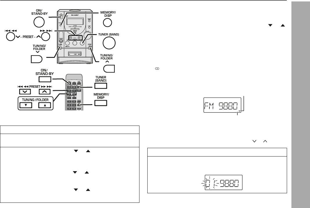 2 Press the MEMORY/DISP button to enter the preset tuning