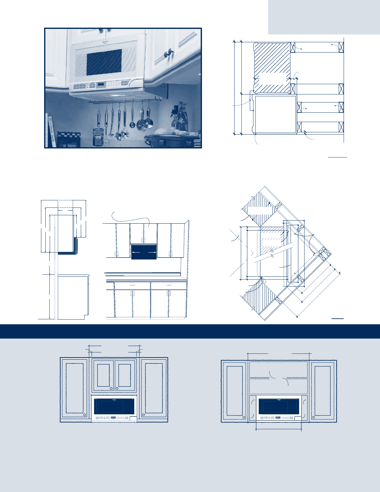 You can turn a blank wall into functional space. Simply mount an OTC microwave with a small cabinet above and place wall