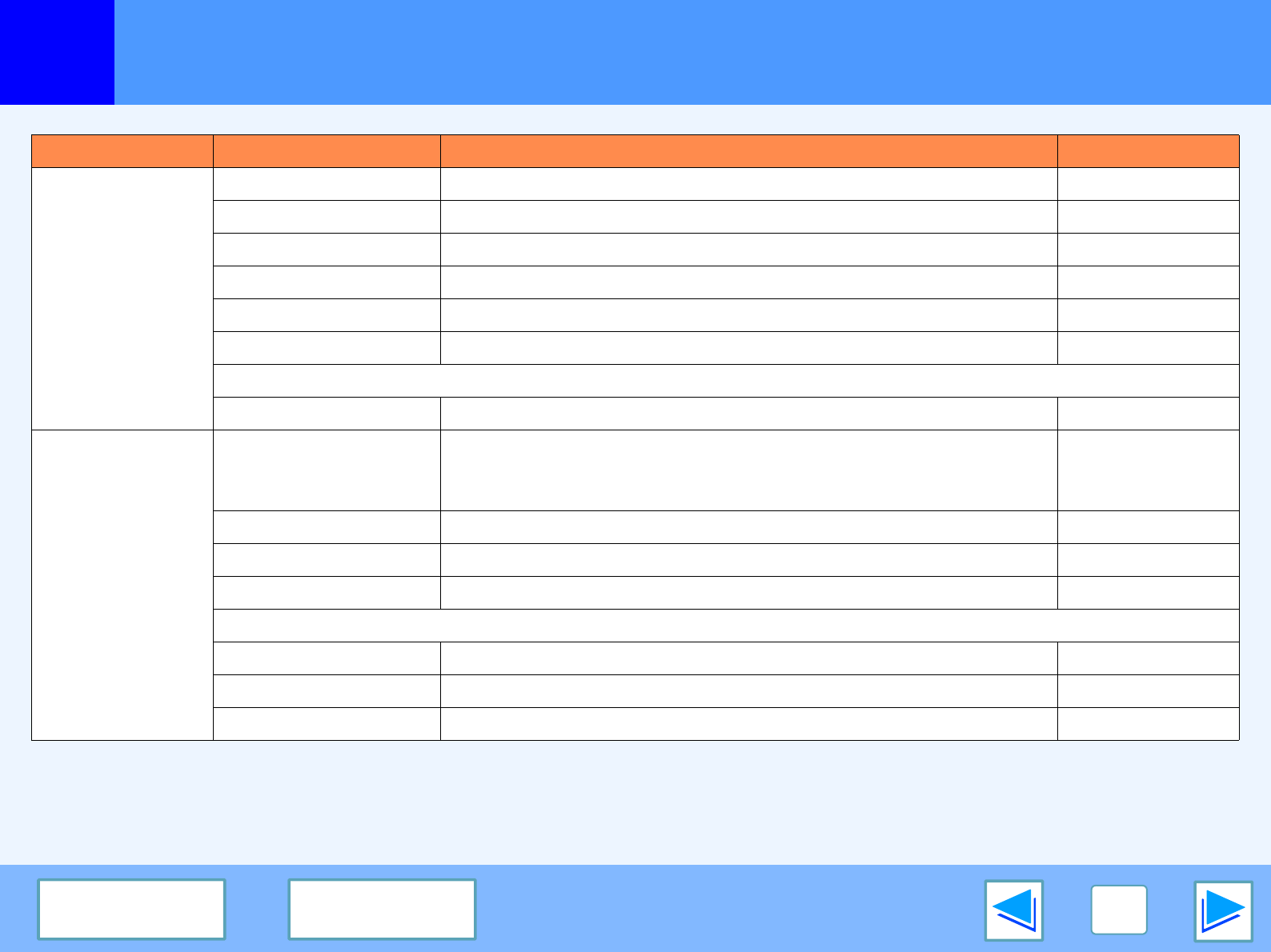 Tab Setting Selections Initial setting