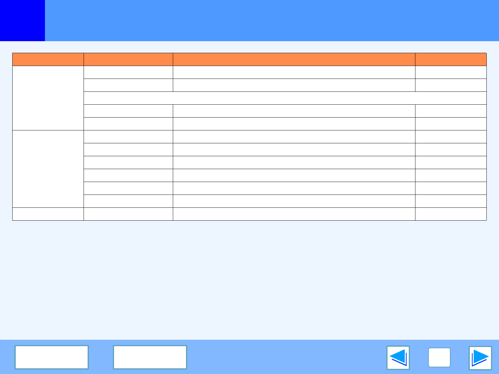 Tab Setting Selections Initial setting