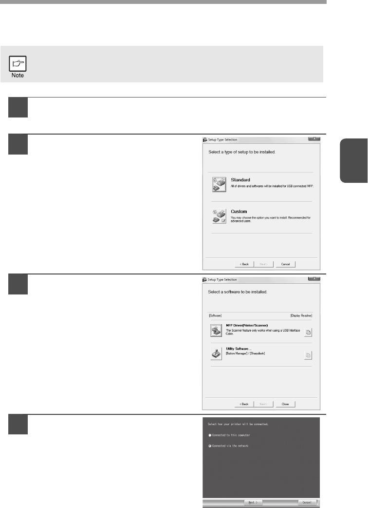If the machine will be used as a shared printer on a network, follow these steps to