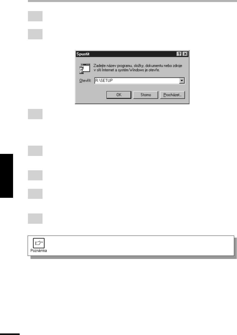 Spustit. Jakmile se objeví níe zobrazené okno, napite R:\SETUP (je-li jednotka