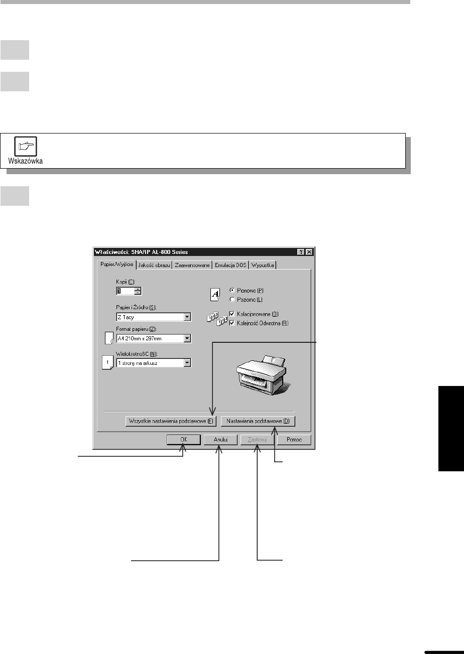 Zostanie wywietlone okno w³aciwoci drukarki SHARP serii AL-800. Jeli korzystasz
